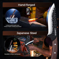 - 【Hand Forged Japanese Knife】 The knives are a masterpiece of craftsmanship, forged with precision using advanced steel technology. Its full-tang blade undergoes high-temperature heat treatment and rapid cooling, ensuring unparalleled durability and edge retention for effortless slicing, chopping, and dicing. It is built to withstand years of heavy use without losing sharpness. Ideal for professional chefs and home cooks seeking precision and reliability.