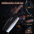 - 【Premium Japanese Chef knife】 Upgrade your kitchen with this premium chef knife set, featuring high-grade Japanese steel for exceptional sharpness and durability. Each knife delivers precision for slicing and chopping, while the robust meat cleaver tackles tougher cuts with ease. The blades offer superior edge retention and corrosion resistance, staying sharp through years of use. Perfect for both outdoor and home cooks seeking reliable, high-performance tools.